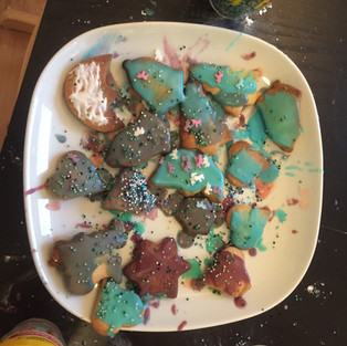 Letztes Jahr war die Schulküche schon belegt, da hatten wir angeboten bei uns zu Hause Weihnachtskekse zu backen. Und das war total toll!!! Also haben wir das dieses Jahr wieder gemacht. Nämlich heute........